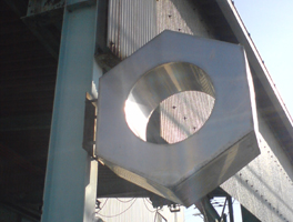 [ ナット ] 大阪府和泉市 ボルトやナットを製造しているらしい工場にありました。眼鏡屋さんは大きな眼鏡の模型を、履き物屋さんは大きな下駄を看板にしていた時代があったことを思い出しました。