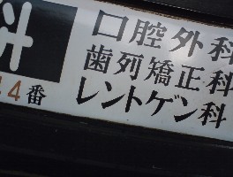 [ 歯科第3弾 ] 大阪府忠岡町 「no.1」「no.18」に続き3例めの「科」です。 看板左下の「北角」の「角」も「no.8」と同じく中央の線が突き抜けています。
